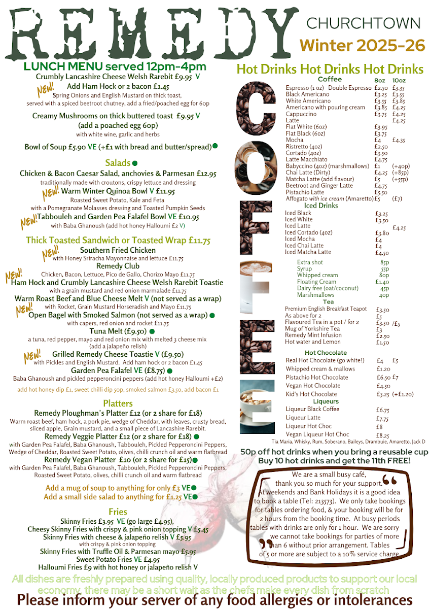 The overall experience reflects a warm, cozy environment where the quality of ingredients and careful preparation invite you to enjoy your time without rush. This approachable menu fits seamlessly with the friendly, relaxed ambiance Remedy Churchtown is known for, making it a reassuring choice for both regular visits and casual stops.
